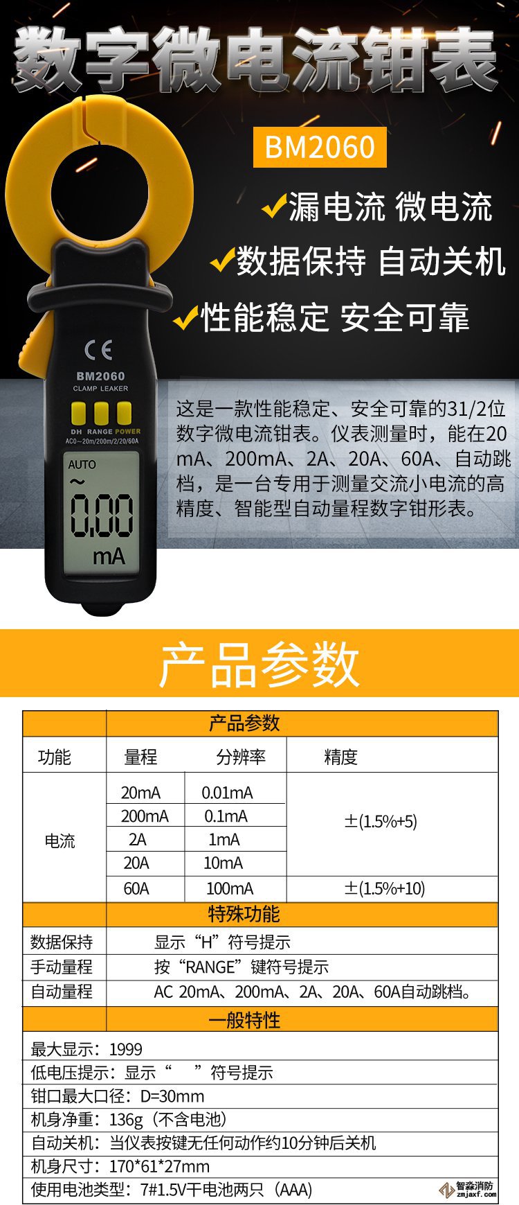 漏電電流檢測儀量程:0A~2A;精度:0.1mA測量電線是否漏電。