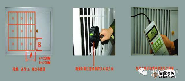 2.加壓送風(fēng)口的風(fēng)速不宜大于7m/s。選取每個(gè)獨(dú)立的送風(fēng)系統(tǒng)或豎井取有利點(diǎn)檢查。